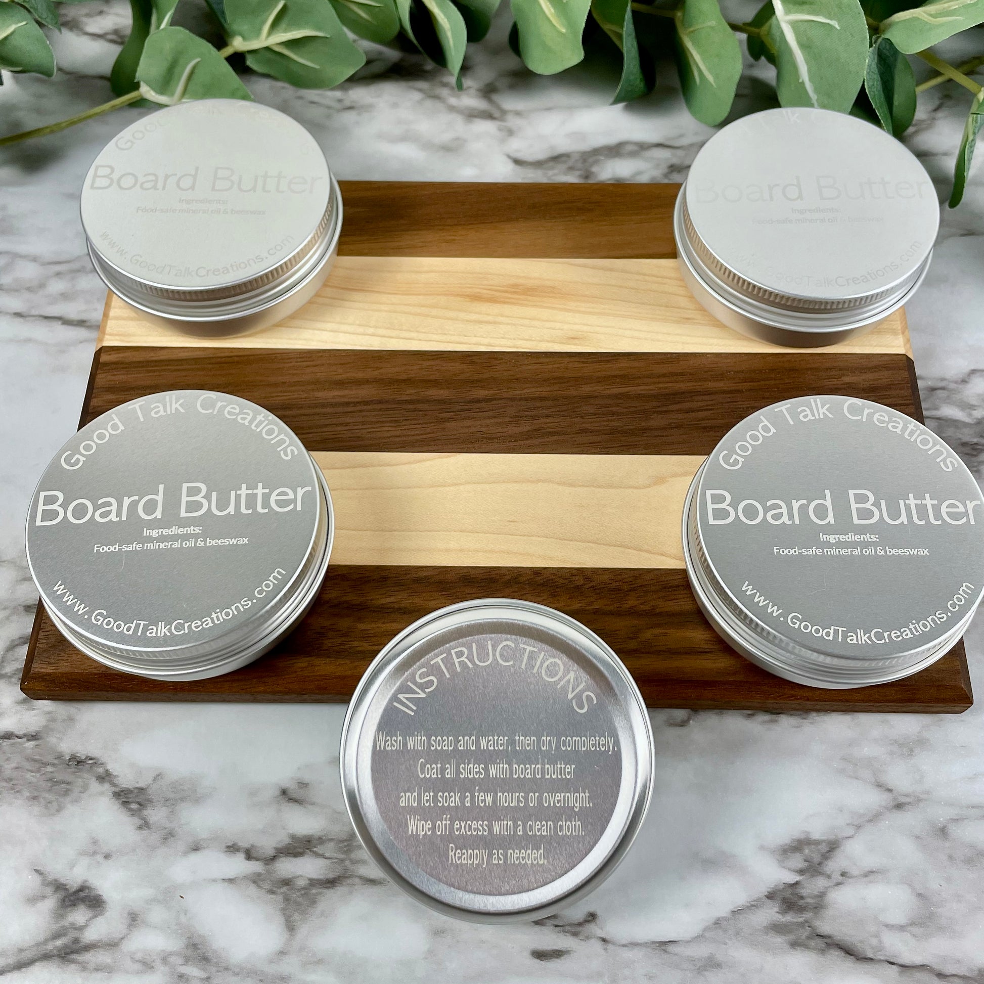 Keep your treasured wooden kitchen items looking their best with our all-natural, handcrafted Board Butter. Specially formulated with a simple, two-ingredient recipe of food-safe mineral oil and pure beeswax, our board butter is the perfect solution for protecting and restoring all of your wooden cutting boards, butcher blocks, bowls, and utensils.