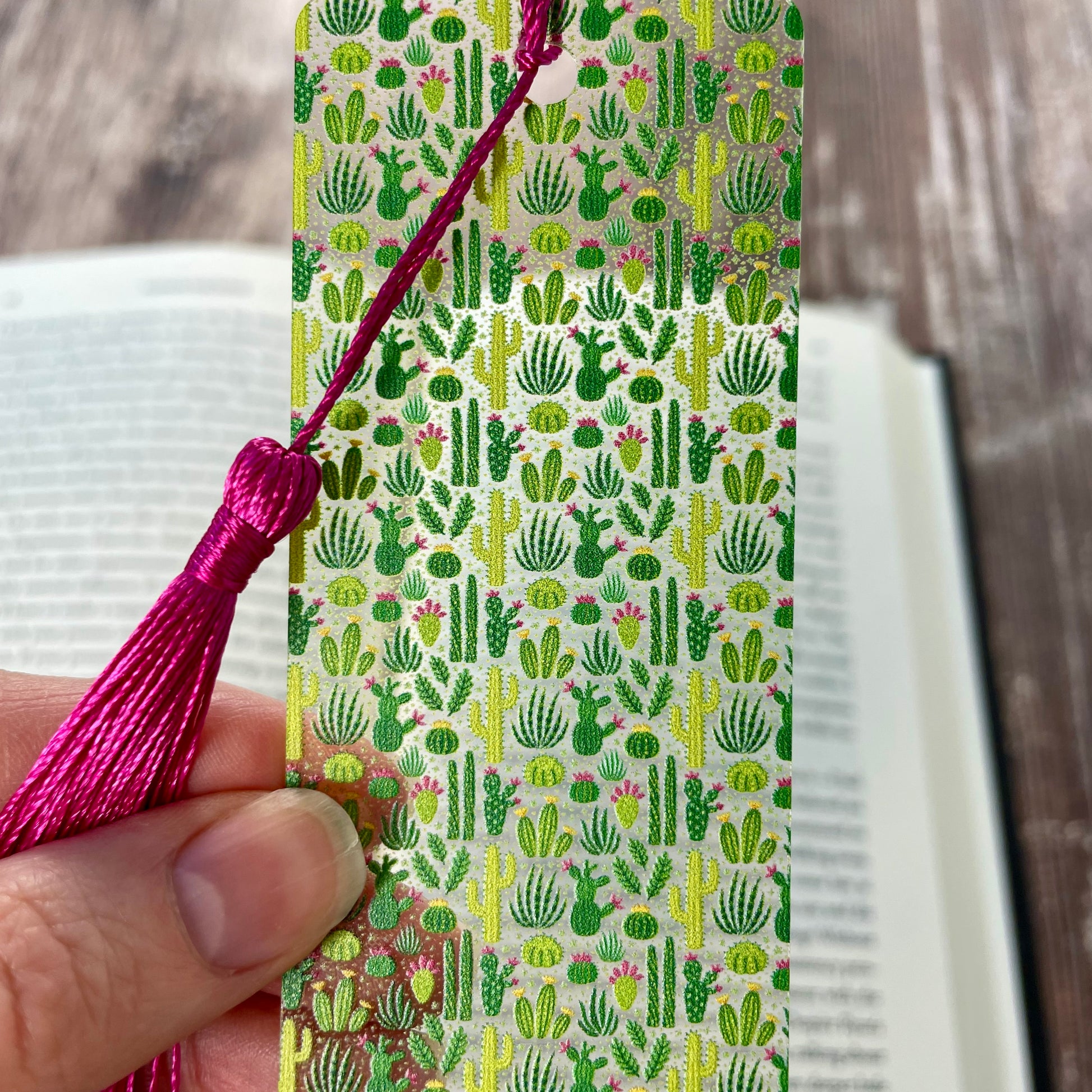 Cactus Bookmark with Pink Tassel: Unique Plant Lover Gift