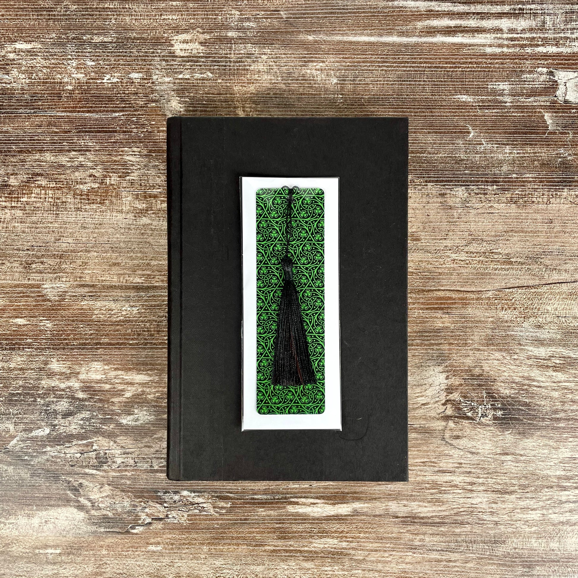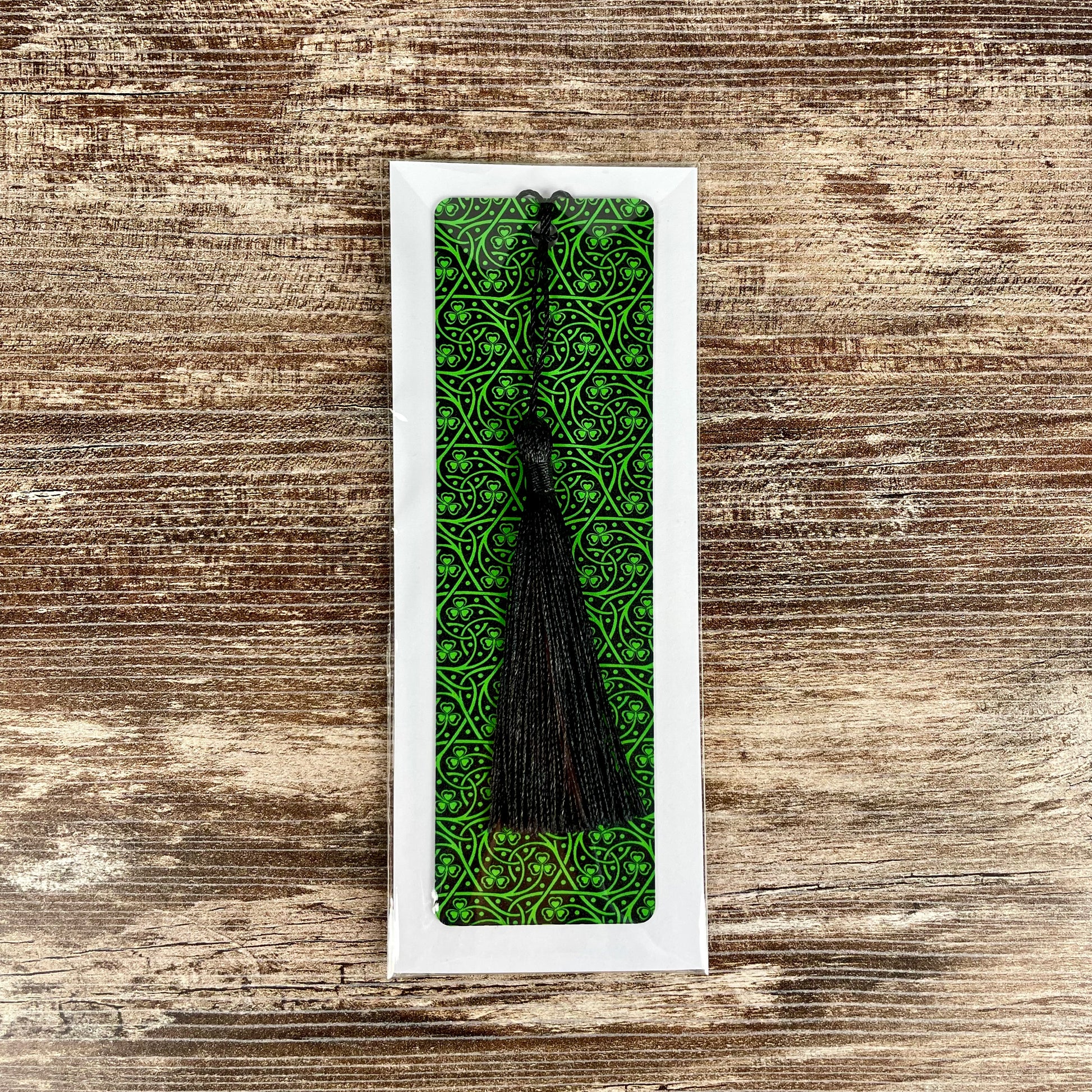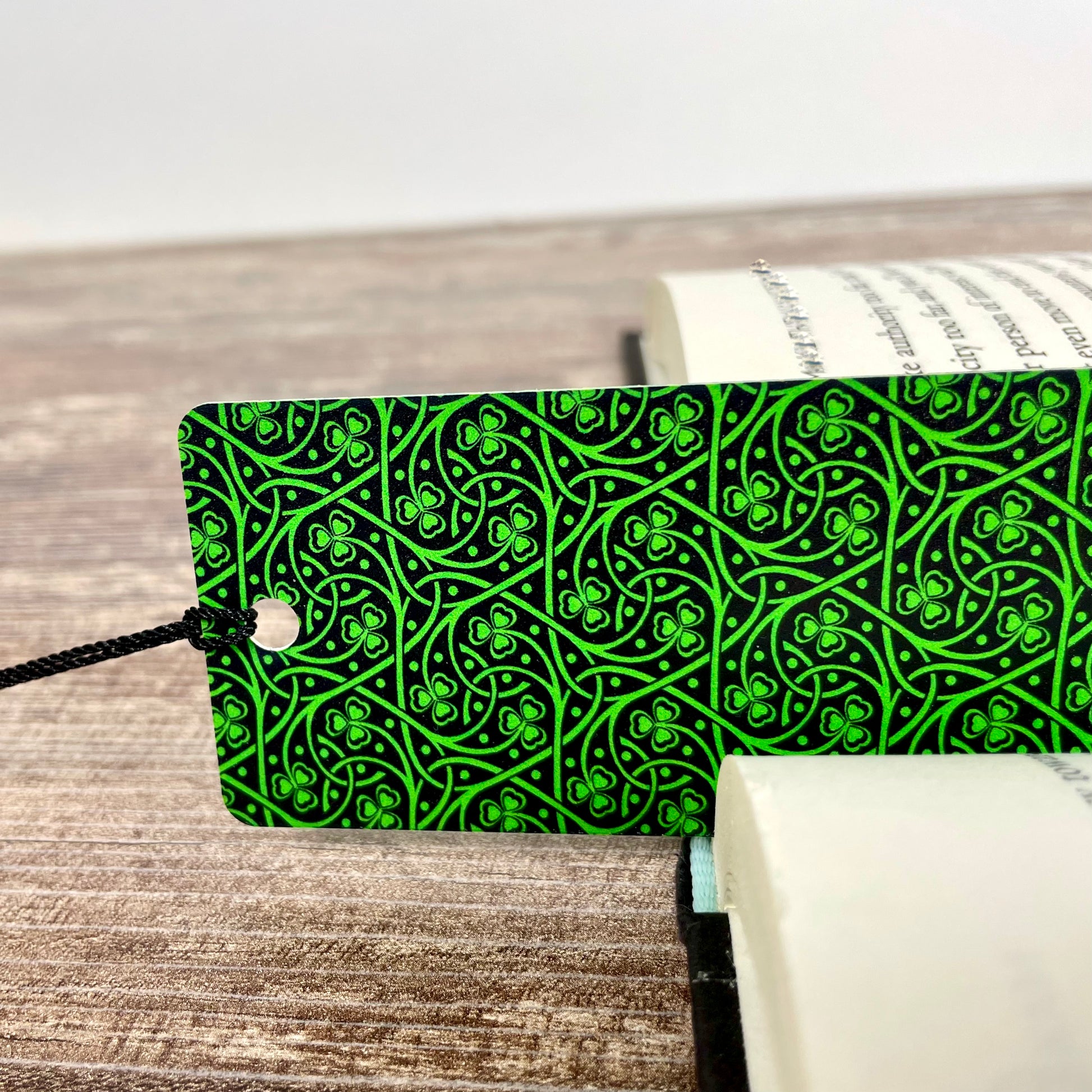 Celebrate your Irish roots with this striking Celtic shamrock bookmark. The rich green design on black is inspired by traditional knotwork and symbols of luck — perfect for anyone proud of their Irish heritage.