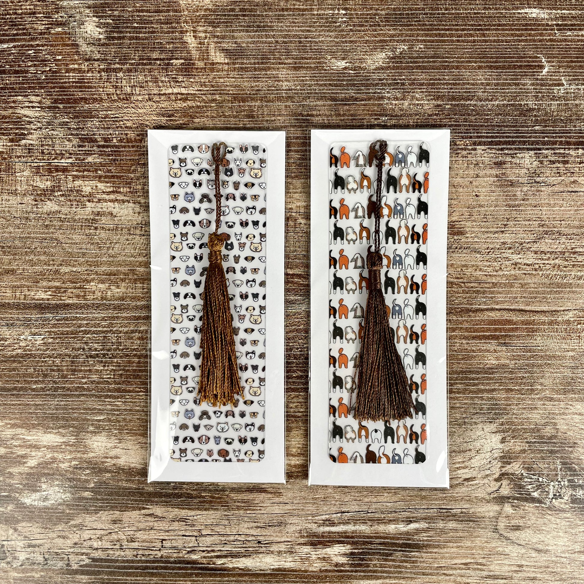Two bookmarks, double the personality. This playful set includes one covered in all the cute dog faces, and one full of wiggly, wagging butts — because dog lovers know both sides matter.